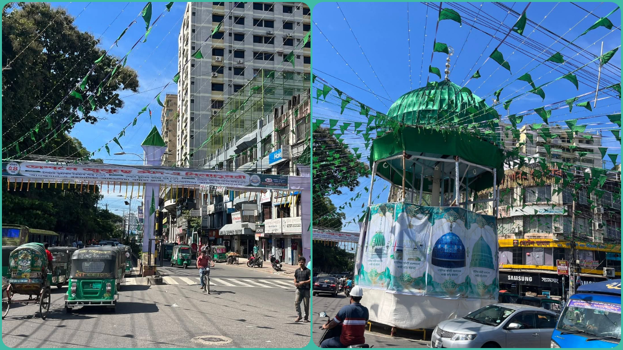 এদিকে, জুলুস উপলক্ষ্যে বর্ণিল সাজে সেজেছে চট্টগ্রাম। বিভিন্ন মোড়ে মোড়ে বসানো হয়েছে তোরণ। সাঁটানো হয়েছে ব্যানার-ফেস্টুন। সড়কের দুপাশে বিশেষ পতাকাও পুঁতে দেওয়া হয়েছে। বসেছে খাবারসহ বিভিন্ন আইটেমের অস্থায়ী দোকানও। বিভিন্ন মোড়ে মোড়ে স্বেচ্ছাসেবীরা বিতরণ করছেন শরবত। পুরো এলাকায় বিপুল পরিমাণ আইনশৃঙ্খলা রক্ষাকারী বাহিনীর সদস্যরা উপস্থিত রয়েছেন। একইসঙ্গে সাদা পোশাকে গোয়েন্দা পুলিশের সদস্যরা কাজ করছেন।